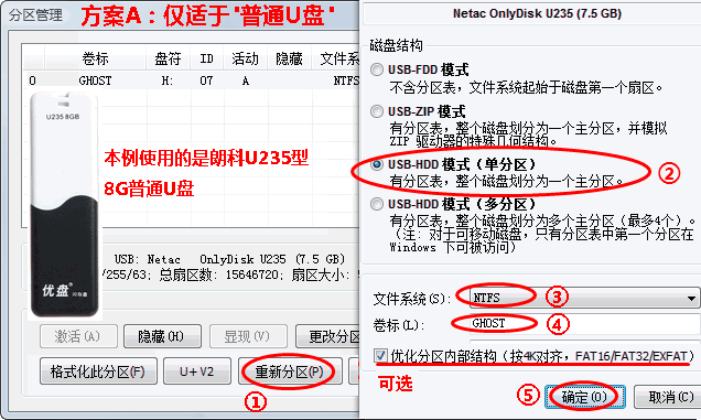 方案A:仅适于“普通U盘”或“读卡器+存储卡”,不适于“移动硬盘”。