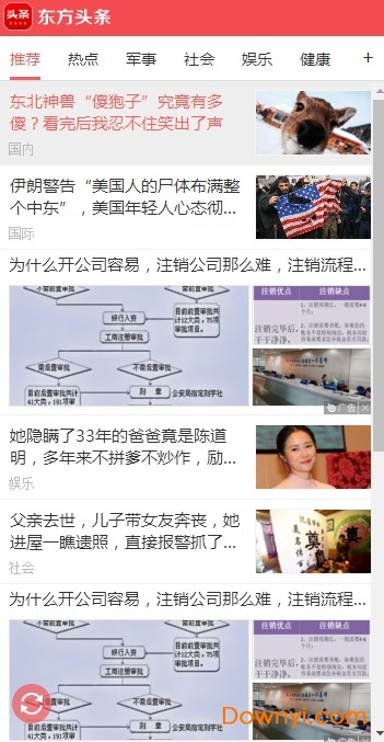 内容包括今日头条、头条新闻、社会热点、国内国际快讯、军事、明星、八卦、娱乐、时尚、笑话等各类别的头条新闻资讯。