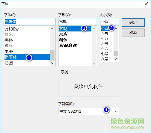 3.选择字体/字形/字体大小/中文字符集,然后点击确定