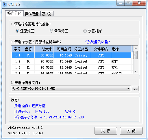 默认操作是还原分区,这个无需改变。我们只需选择要安装的磁盘为C盘,然后再从本地硬盘中选中要装的GHO文件。为了稳定,建议将U盘中的系统复制到硬盘中的非系统分区内。最后选择完成后重启就OK了。这时就可以拔下U盘了,不然系统重启后仍会以U盘启动进PE。