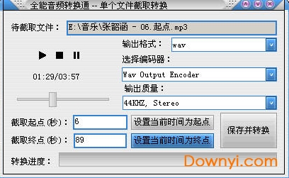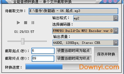 从主界面选取您所要转换媒体文件,这里只能选一个文件,按下截取转换按钮,或者使用右键菜单,即可出现截取转换对话框。