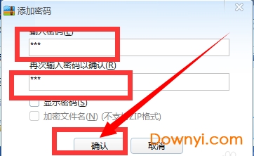 4、进入到添加密码界面,如下图所示,我们需要输入两次密码,输入完成后点击确定就可以设置成功了。这里一定要注意密码不能忘记,忘记了就打不开了哦。
