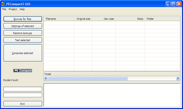 pecompact是一款能压缩可执行文件(后缀为EXE)的压缩加壳工具,压缩率极高,压缩后的程序无需解压即可直接运行!PECompact通过压缩代码、数据、相关资源使压缩能达到100%,由于在运行时不需要恢复磁盘上压缩后的数据,所以与没有压缩的程序在运行时没有明显的速度差异,在某种程度上还有所改善。
