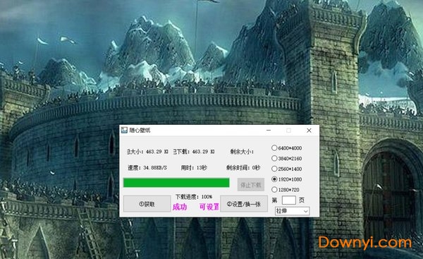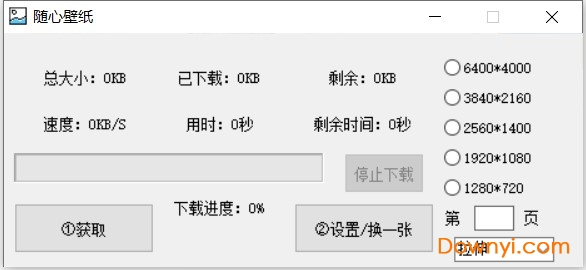 点击获取,选择分辨率,点击设置/换一张