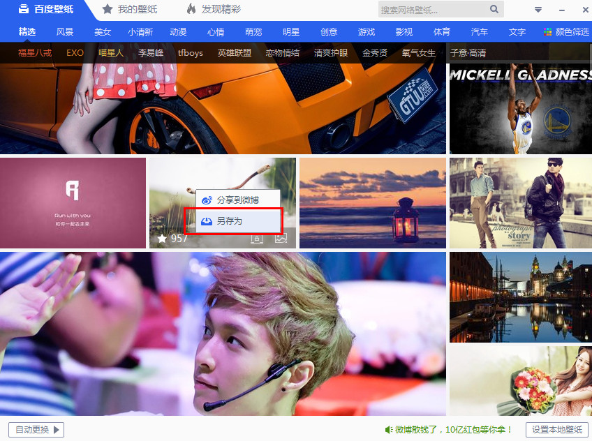 谁说壁纸一尘不变,谁说壁纸不尽人意,用百度壁纸,你可以从百万高清网络库中挑选你喜欢一批壁纸放入自己的分类目录进行轮播,随心情随主题,任你更换。