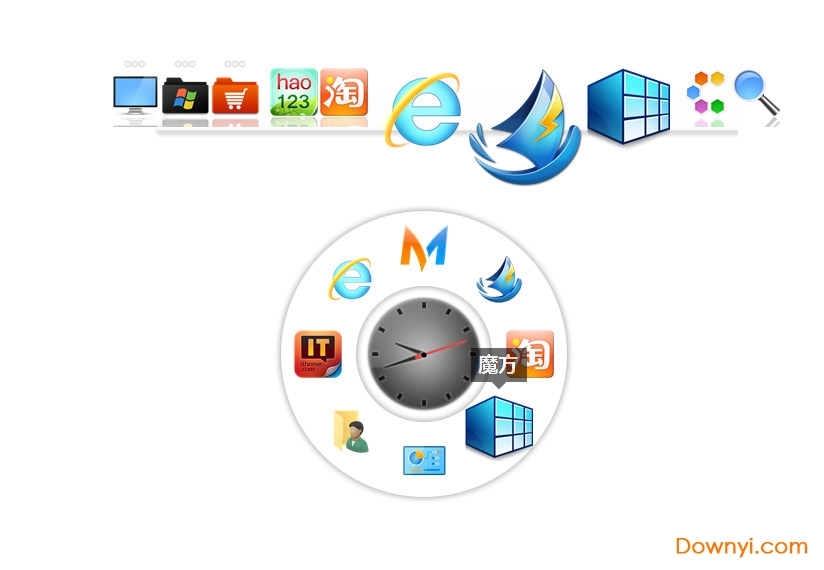 4、自由键鼠控制:您可以使用鼠标滚轮和键盘左右箭头控制圆形面板内的图标旋转,更可以按下键盘的空格或者回车切换背景模式和中心图标样式!