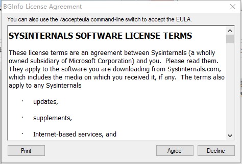 Bginfo 是微软 Sysinternals 公司开发的一款小工具,它会在桌面背景的壁纸上自动显示有关 Windows 计算机的相关信息,例如计算机名称、IP 地址、服务包版本等。您可以编辑任何字段、字体和背景颜色。并可将其放在系统启动文件夹中,实现每次系统启动时自动运行显示系统信息或任意文字的功能。您还可将其配置为显示登录屏幕的背景。