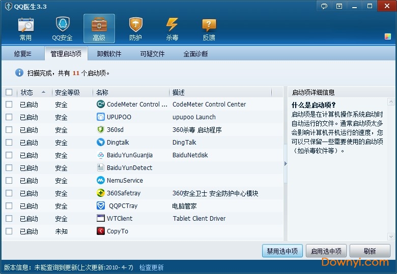 qq医生软件就是一个病毒查杀软件,它就相当于电脑管家一样,能够实时监控你的电脑,防止有什么病毒入侵,而且还能够选择禁用一些软件,特别的好用,需要的话可以来体验。