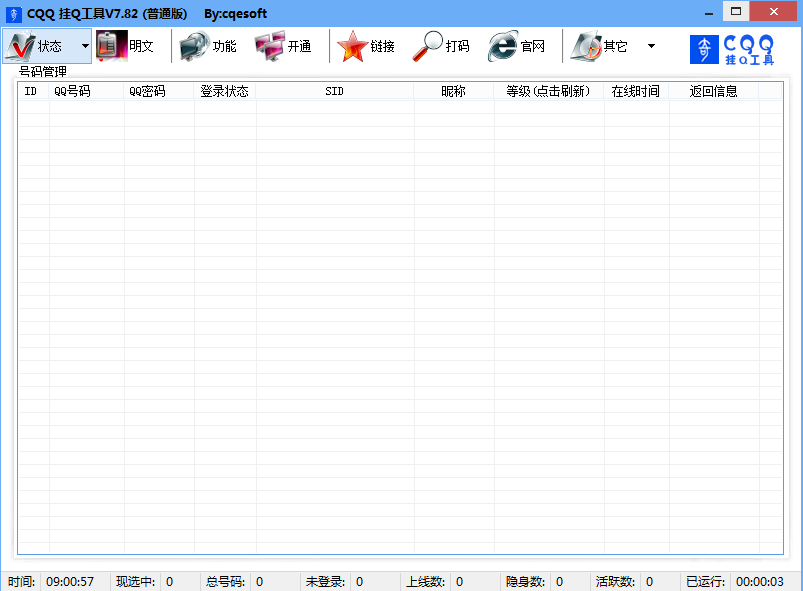 CQQ挂Q工具支持3GQQ挂Q,可用于改资料、防止腾讯回收,随时随地都可以登录使用,升级账号等级,支持用户一次性挂多个QQ账号!满足用户的需求!