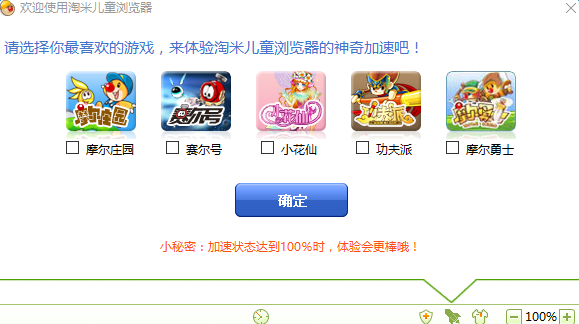 2.对淘米旗下的摩尔庄园、赛尔号、小花仙等一系列儿童游戏产品提供加速功能,每一次的提速都会给千万个小玩家带来新的体验和惊喜,淘米儿童浏览器正在不断努力让孩子们玩的更开心