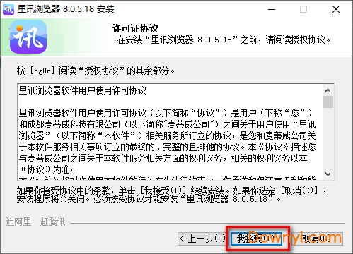 2、点击“我接受”: