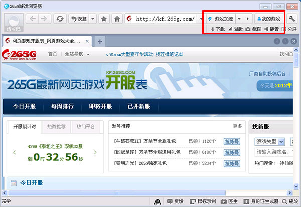 国内游戏第一门户网站265g推出的一款浏览器,它拥有清新自然的界面和专业全面的游戏功能。
