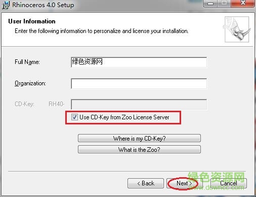 4.勾选”Use CD-Key from Zoo License Server“(最重要的一步),点击”next“
