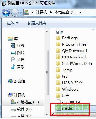 6、选择许可证文件,就是放在C盘下的“nx6.lic”文件;