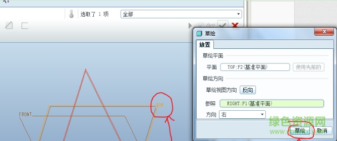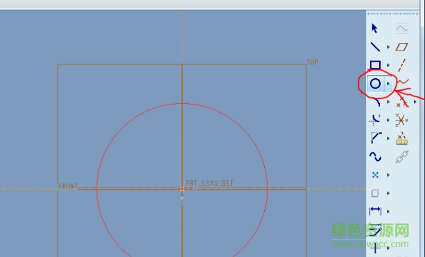 5.如图所示,进入草绘后,点击圆工具,在草图上绘制一个圆。