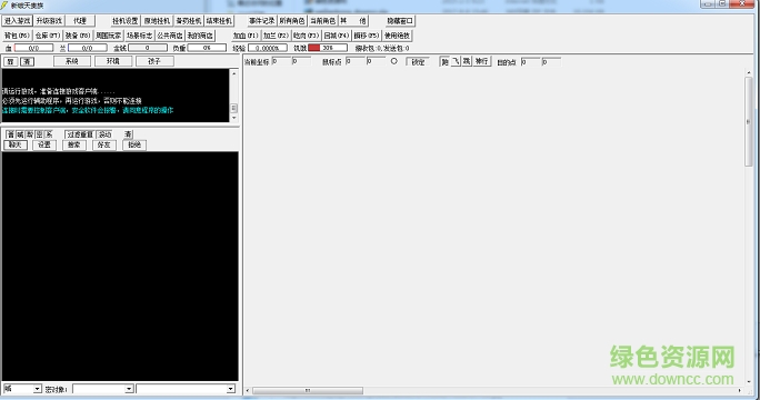 免地图【自动捡取】 自动捡取地面上物品,不可过滤,全部捡取【自动秒杀】 自动使用秒杀技能【屏蔽武功】 在3D模式下 屏蔽 4 5 6 7 8层武功效果,本功能容易出现卡屏现象【删神行限制】 删除神行技能小限制【自动吃肉】 自动补充饥饿,【屏蔽玩家】 开启本功能后,所有玩家将被屏蔽,如果想查看其他玩家话请关闭此功能,即可,【自动加蓝】 自动补充F2蓝药,请将使用蓝药放到F2即可,然后开启本功能【自动加血】 自动补充F1红药,请将使用红药放到F1即可,然后开启本功能【隐藏怪物】 将制定怪物隐藏,客户端内不在显示该怪物,但是被攻击效果仍然存在,请慎重使用此功能,【使用武功】 自动使用武功暂时只支持5 6 7层,选择相关属性,开启后,自动使用该武功 【定时发言】 自动喊话,设置间隔与发言内容后开启此功能【快捷键技能】