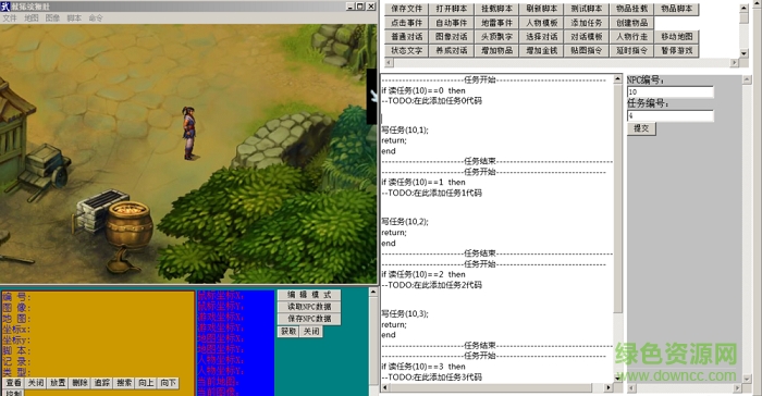 NPC可以任意移动,但是注意,请将模式切换成编辑模式,否则修改的NPC坐标图像不会被保存,如果NPC编号选0,再使用放置,就可以拖着主角到处跑了。