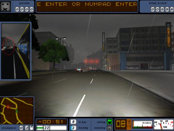 作为一个巴士驾驶员,还必须遵守交通规则,小心驾驶不使乘客受伤或者不满。这使得《Bus Driver》跟以往的赛车游戏十分不同-驾驶巴士的经历与那些在大街小巷穿梭的狂飙游戏十分不同。游戏中没有发了疯似的追逐赛,取而代之的是玩家必须加倍小心驾驶让乘客开心,同时还必须按照时间表遵守交通规则。玩家必须记住自己驾驶的不是一辆超级跑车,说停就能停。玩家驾驶的是一个大家伙,必须随时高度警惕。即便通关后,玩家也被允许自由修改各种数据,例如天气、配车、乘客人数等。