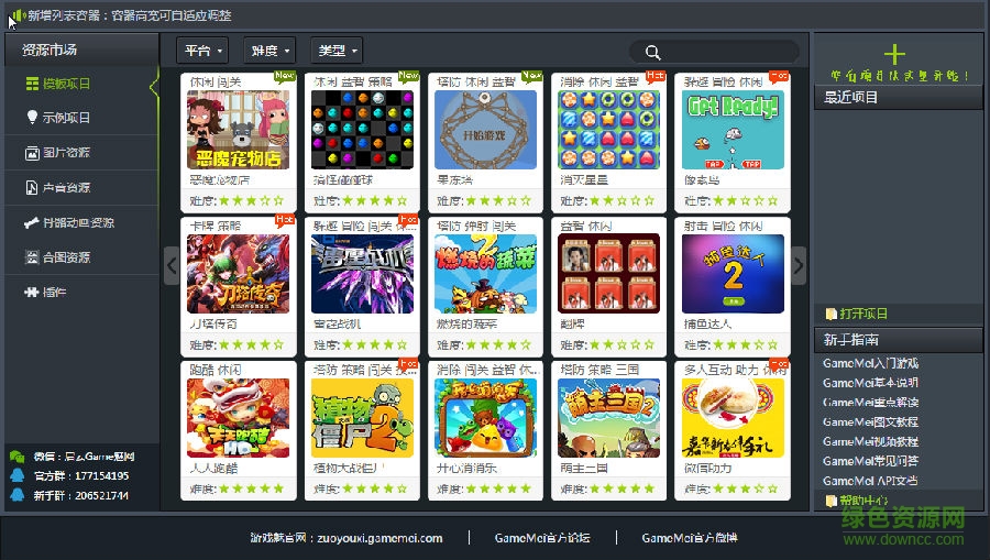 游戏魅是一款游戏DIY制作和开发软件,其优点在于可以不下代码就可以制作出Android、ios、H5平台的游戏,简单可行,是游戏策划或是有个性创造的人群喜爱的软件,绿色资源网为大家带来官方最新版下载,欢迎体验!