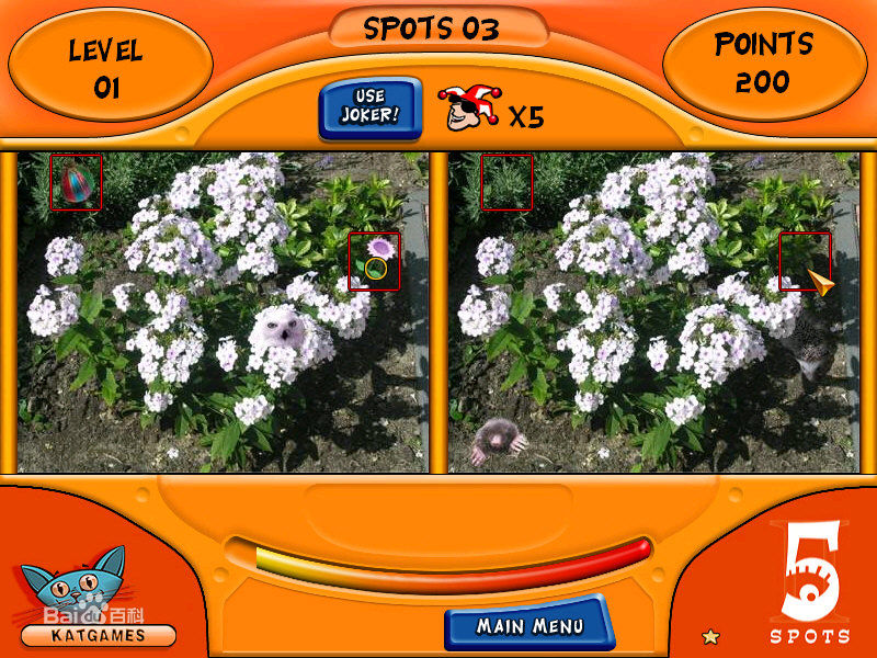 找别扭5是一款类似于找茬的单机游戏,游戏画面清晰,支持皮肤更换,玩法很简单,只要在有限的时间里找出若干图片间若干不相同的地方,就过关了。游戏共有四种模式,第一种就是找出两张图不一样的地方、第二种是找猴子,找出图片中隐藏的猴子、第三种和第一种是样的,不过是计时间的,第四种是从左边的图片中移走五块,你要在右边的图中按照顺序把找回来。
