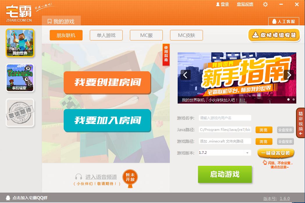 宅霸是一个提供Minecraft等游戏下载、单人游戏、朋友联机、服务器联机等综合性平台。丰富的多元化功能:联机、解说、陪玩、正版购买一站式解决。谁说在家只能一个人战斗。