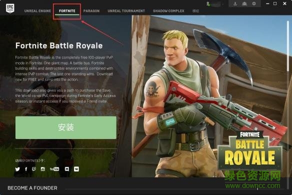 2、进入平台,点击上方第二个标签Fortnite,再点击安装,即可安装堡垒之夜大逃杀模式。目前堡垒之夜的大逃杀模式免费,其他模式均需付费才可下载。