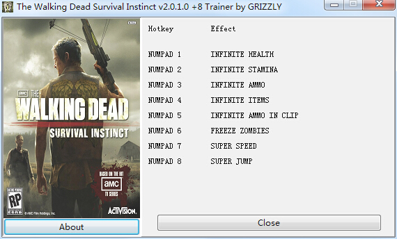 行尸走肉生存本能八项修改器是专为游戏《行尸走肉生存本能》打造的辅助工具,可提供无限道具、冻结僵尸、无限耐力、无限弹药等八项功能,帮助降低游戏难度,轻松玩游戏。