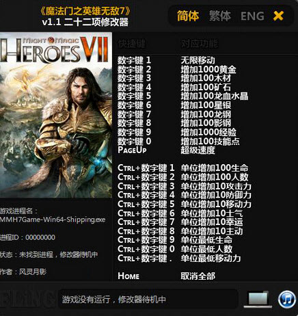 魔法门之英雄无敌7修改器是为这款游戏制作的游戏22项修改工具软件,该软件功能齐全、强大,支持丰富游戏元素修改,是游戏的难度降低,带给玩家更多的极致游戏体验,轻松闯关,喜欢的朋友快来下载吧!