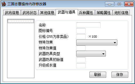 武将属性,信息,系统设置,城市,兵种策略,道具等各个方面内容修改。