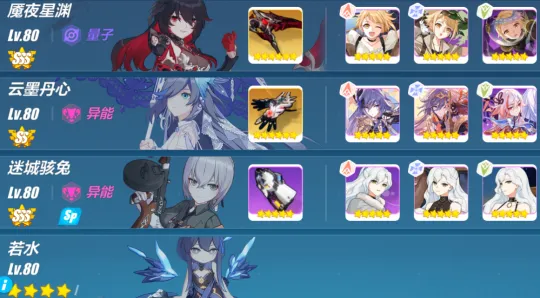 4.「云墨」武器佛手阴晴会根据使用分支数在下场后增加全队全伤,所以流程是「冰希」攒足 SP 再切「云墨」攒 SP,然后开始爆发流程。