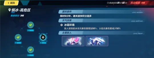 本期寂灭深渊天气为冰霜环境,效果为敌人受到的冰冻元素伤害增加 50%,火焰元素伤害减少 50%。最后一层惧冰-高危区敌人为「贝纳勒斯」。IOS 服扰动 444,本期选择 IOS 服 SSS「魇夜星渊」攻略。