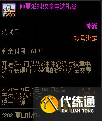 DNF仲夏派对纹章自选礼盒开启后,可以从2中仲夏派对纹章中,选择获得1个。获得的纹章无法交易,两个纹章一个是三攻一个是四维,而且有8%的白字,可以说是毕业的纹章。
