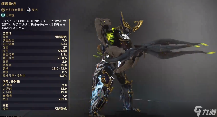 逐枭是一把能够灵化的霰弹枪,在爆头命中时可积累灵化能量。充能完成后,武器可切换为双持半自动手枪模式。基础形态下该武器造成切割伤害,灵化后则转为高暴击倍率的辐射伤害。获取方式为在卡瓦莱罗处以8000声望兑换蓝图,灵化功能需完成五个进化阶段的挑战方可解锁。
