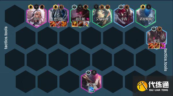 开局首抢攻速,亚索的装备火炮和飓风是关键,最好能稍微卖点血拿装备。这版本3- 6有光明装备,40血以下有低保,连败亚索很容易-波翻盘,所以前期掉点血千万不要慌。亚索有两件套,可以考虑光明装备给厄斐琉斯拿,厄斐琉斯也是这套阵容的一个关键输出点。前期推荐3哨兵3神盾或4黑夜过渡。