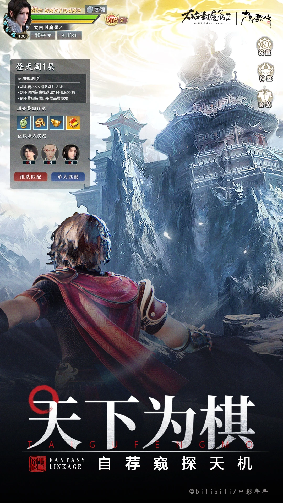 高画质3D真实再现开放大世界尽在《太古封魔录2》,大制作全新国风仙侠武侠修仙MMOARPG,挂机体验沉浸式东方玄幻情缘!探索网文剧情诠释故事,根据山海经震撼定制还原异兽,进阶吞噬化身高战神宠,凶猛坐骑陪同乘鲲入海!红装法宝公平掉落爆屏,诛邪伏魔经验暴涨,多重转职缔盟平天下!多姿红颜花样社交,婚宴别墅养狗种菜育仙娃,谱写封魔录!