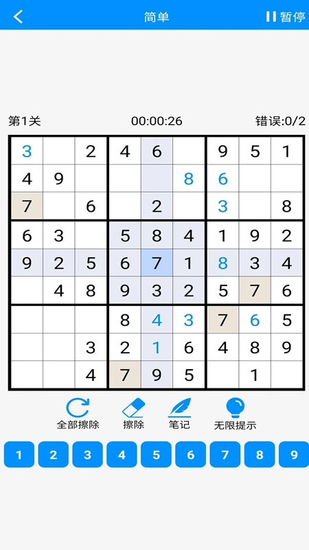 数独目标是用数字填充9x9的宫格,让每一列,每一行和每个3x3小九宫部分都包含1到9之间的数字。9x9的宫格中会有一些方格填上数字。你要做的是运用逻辑来填上缺失的数字并完成宫格。数独题目丰富,分简单,中级,困难,专家四个级别模式,辅助检查错误,重复项突出显示,笔记功能,不确定的数字笔记记录提示功能,一目了然数独,作为一款数字益智,不需要你具备计算和特殊的数学技能,只需要智慧和专注。提升注意力和智力!