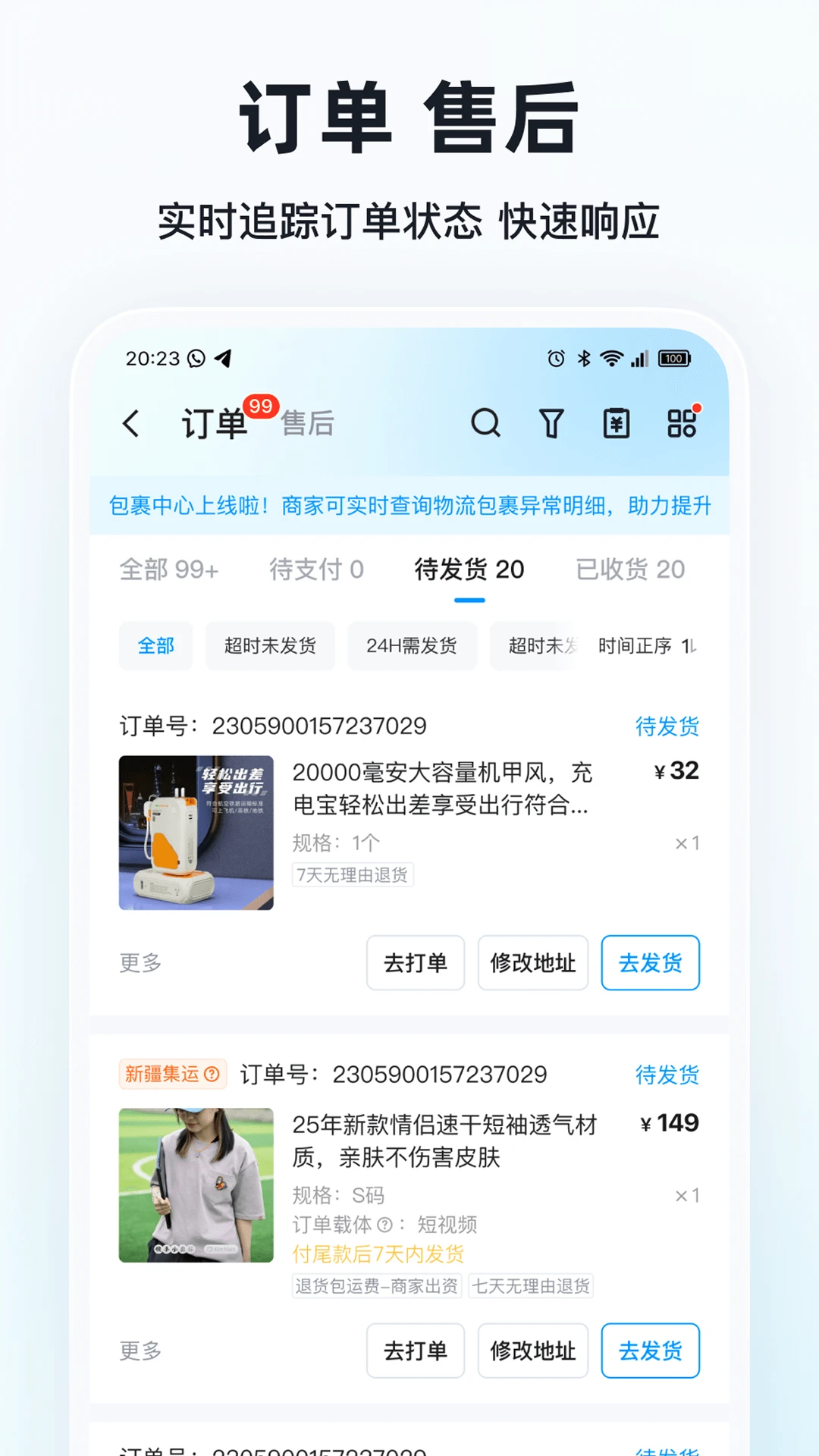 ● 订单管理:实时查看订单状态,支持查看待发货等数据。