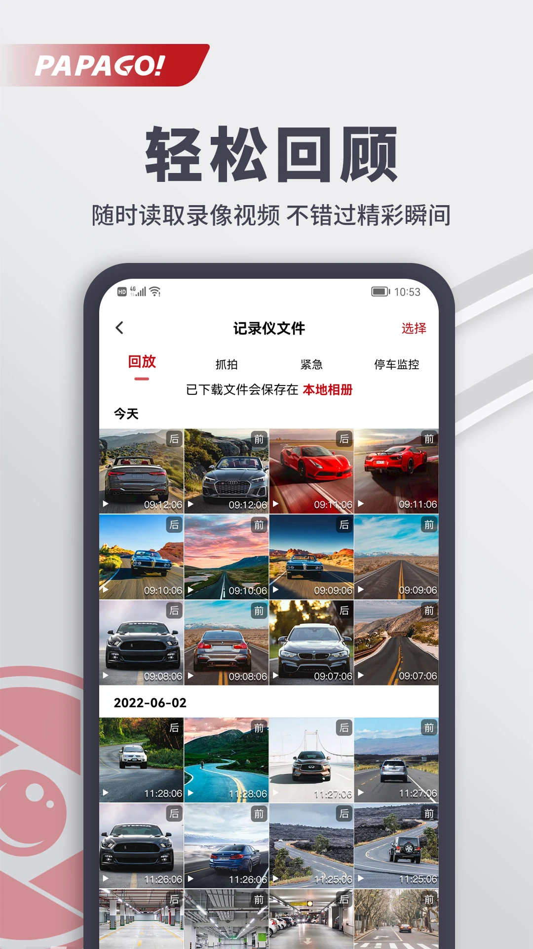 PAPAGO焦点是专给广大的PAPAGO车友们使用的行车记录仪控制软件,支持Wifi连线记录仪,对记录仪做实时预览、回放视频,可以轻松实现手机大屏幕查看,无需电脑直接下载视频到手机端,摆脱传统记录仪一定要用电脑查看视频的窘境,给您全新的行车记录仪使用体验。