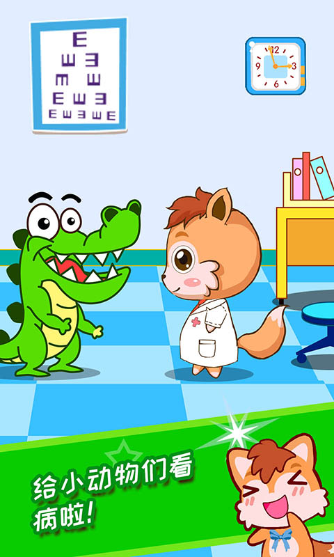 嘟嘟医院让你实现给动物治病的梦想。患病的小动物有小白兔、小浣熊、大象、鳄鱼、猴子、老虎,他们有着不同的患病情况,包括发烧、拉肚子、骨折、眼睛痛、外伤流血。通过给这些小动物看病,可以消除宝宝对医院的恐惧。同时游戏有温馨提醒,让宝宝和小朋友养成良好的生活习惯,比如吃东西前要先洗手,睡觉要盖好被子,看电视不能看太久,等等。