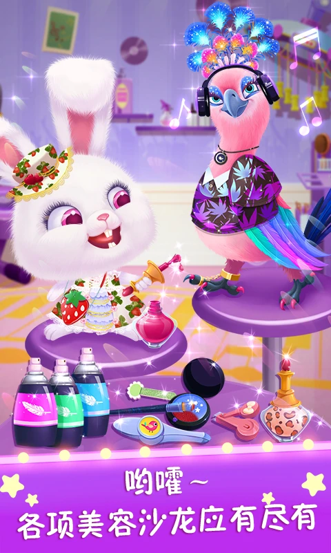 这不,新店刚开张,居住在附近的宠物居民们就都来凑热闹了~兔子小姐来了,她的绒毛太长了,活脱脱变成了一团白色的棉花;熊猫大叔来了,他这是怎么了?全身的白毛都被染成了黑色,不知道的还以为这是一只黑色的狗熊呢……这么多可爱的毛绒宠物,小小宠物设计师们,快快来为它们梳妆打扮吧!