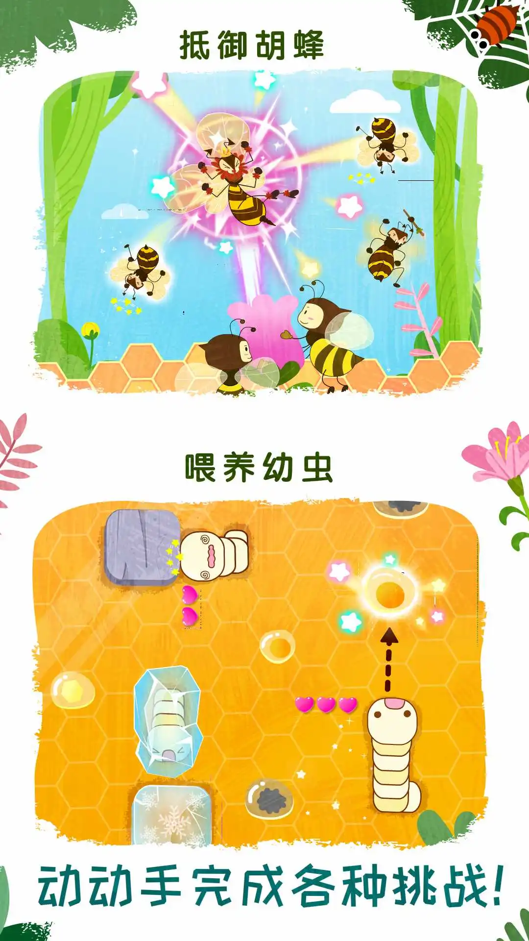 有趣的情景模拟,宝宝将在趣味互动中,全方位认识蜜蜂和蚂蚁,学习昆虫百科知识!