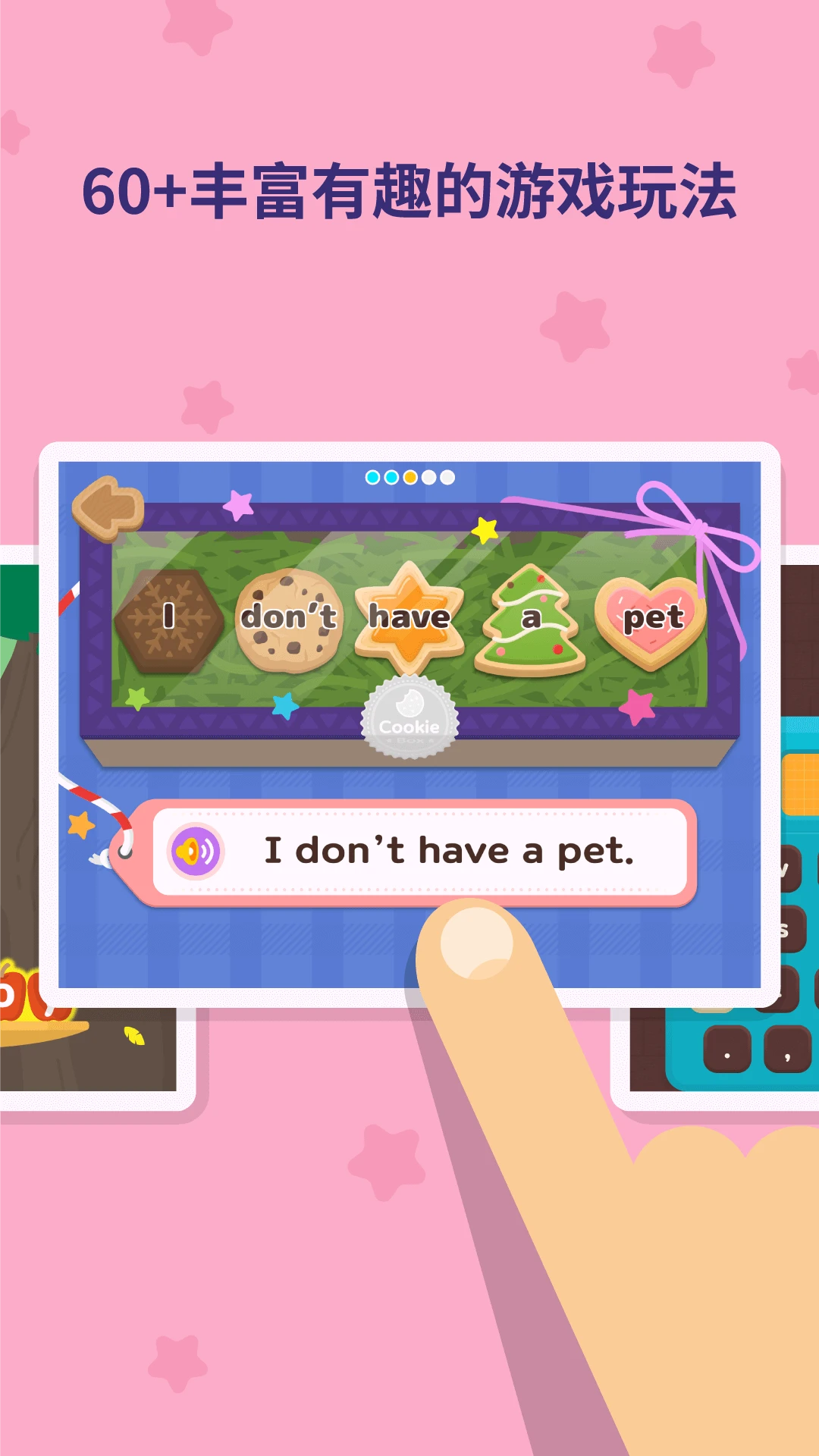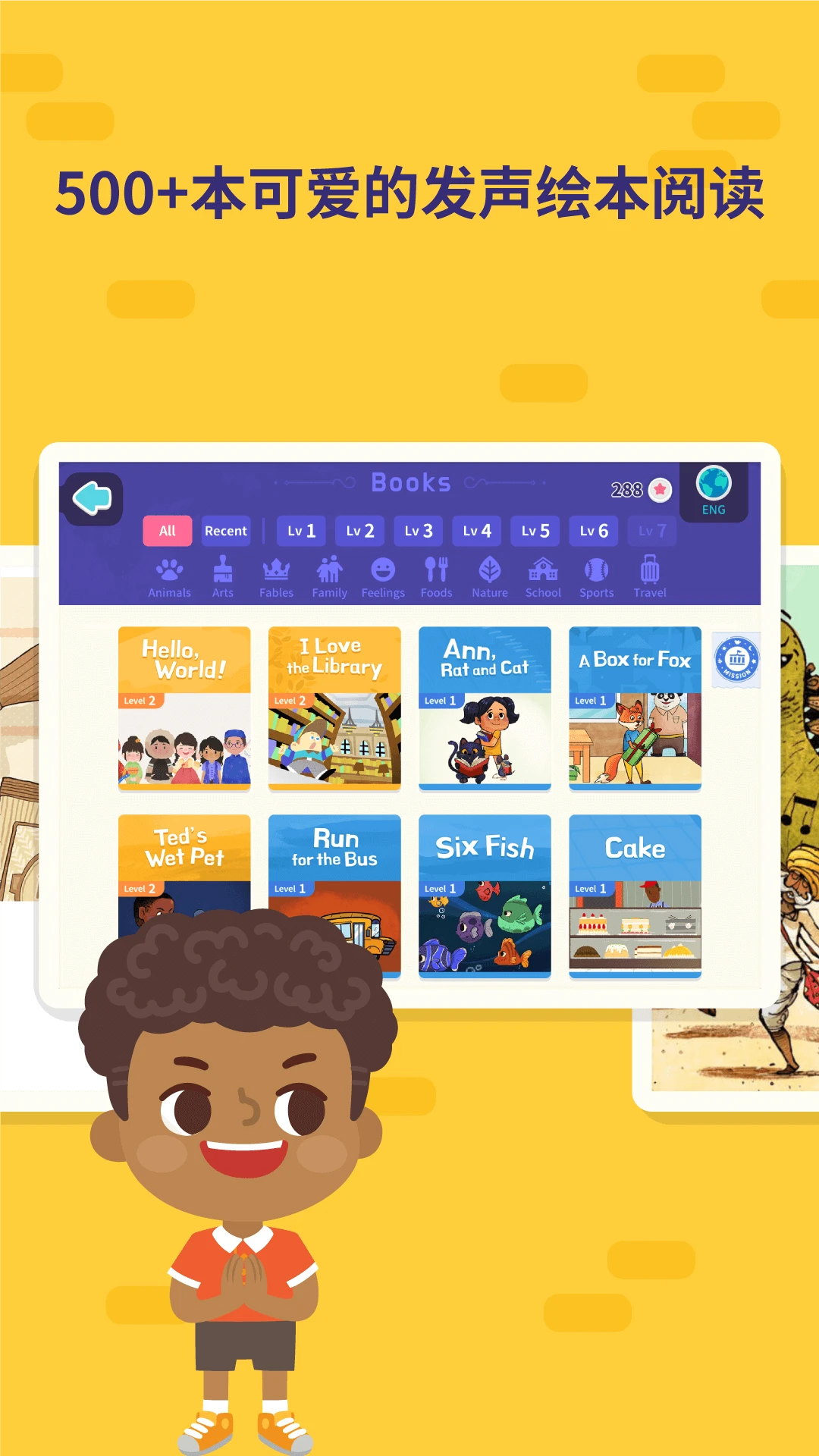 通过多种互动方式,包含有趣的游戏式闯关练习、可点读的英文绘本、原版视频,使语言学习变得立体且真实。