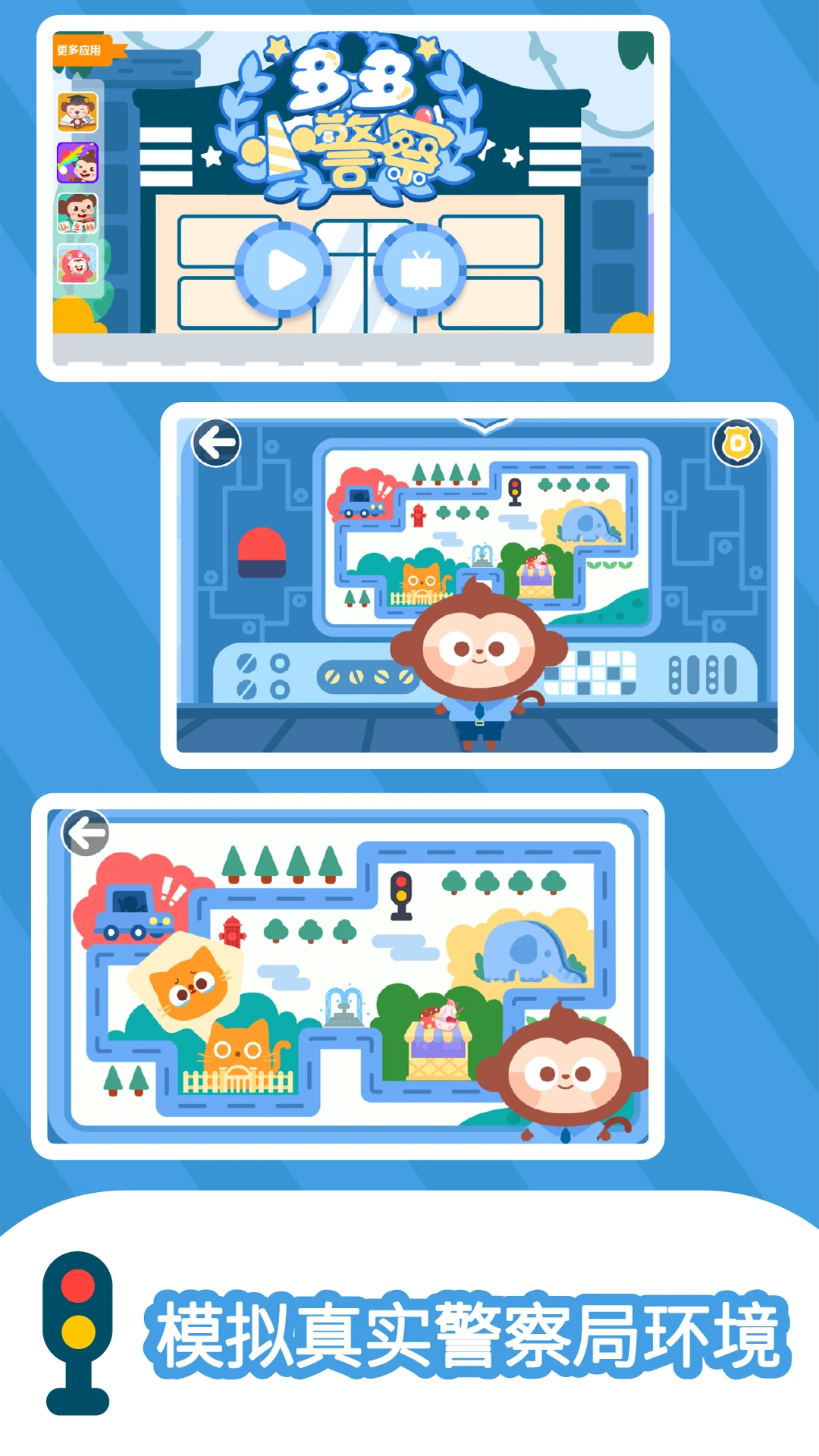 【多多小警察】真实模拟警察破案环境,配置专业装备,让小朋友可以变身帅气的小警官,驾驶警车去处理各种突发案件,帮助遇到困难的人。