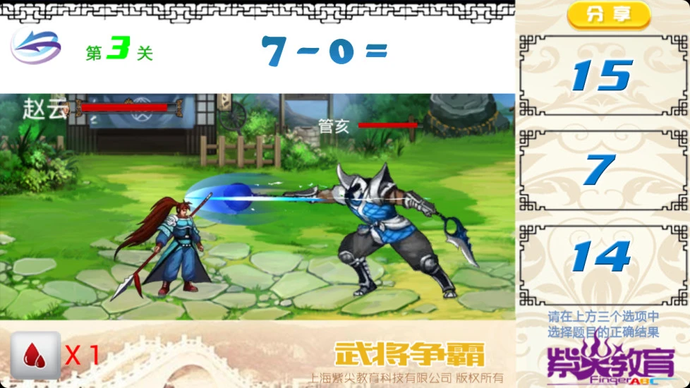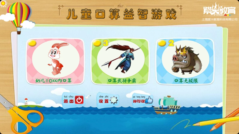 儿童口算益智游戏2016年全新改版!这是一款能够提高儿童加减法(乘除法)速算能力的趣味游戏。支持三种玩法:幼儿十以内口算(1-4岁幼儿)、口算武将争霸(通关模式)、口算无极限(无尽关卡)在游戏中玩家可以选择计算的难度,比如幼儿可以选择5以内加减法,小学生可以选择20以内或者100以内加减乘除训练。在家长的鼓励下让小朋友玩这个游戏,通关的小朋友可以得到家长的奖励!不要小看小孩的速算能力哦,儿子是可以完胜老爸的!口算世界排名系统,让您知道您在本省、国内、世界的排名,以及与玩家的直线距离。你不是一个人在战斗!或许500米以内还有其他玩家在陪你一起玩!