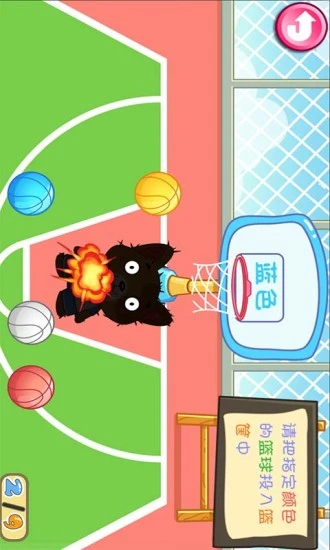 4 投篮球,根据语音选择正确颜色的篮球投篮。