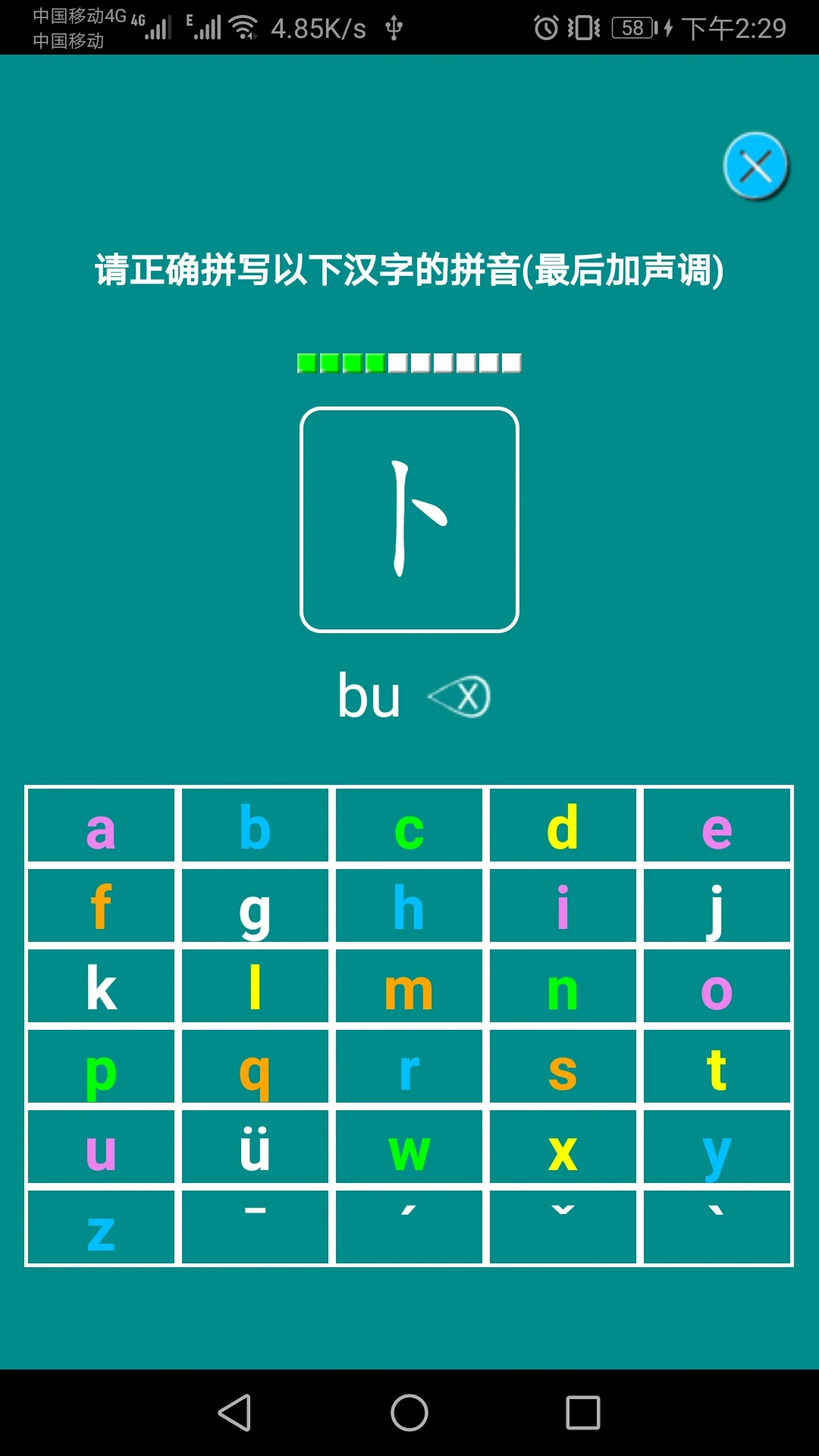 根据汉字拼写拼音,可练习常见的1000多个汉字的拼音及读音.