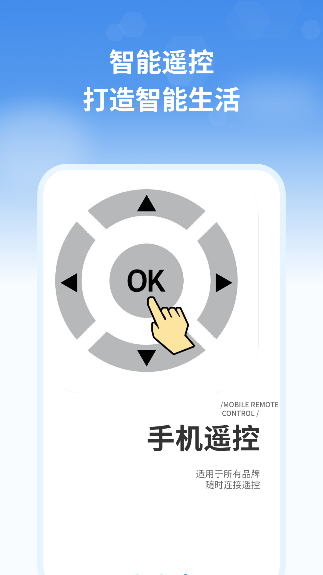 是一个空调电视家电多功能遥控器,每当你找不到你的遥控器,空调遥控就会帮助你,可以控制红外功能的空调以及电视、机顶盒等家电设备,若您的手机不具备红外功能,则该遥控器APP需要匹配外部设备才可以正常使用。家里的电器遥控器:电视机/机顶盒、盒子、空调、电风扇、DVD、功放、投影仪等智能家电……都能遥控