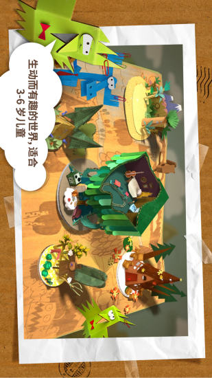 麋鹿亚里士多德、啄木鸟笃笃以及其他可爱的纸艺卡通人在纸森林带领孩子们一起探索精彩的纸艺世界!让我们一起学习、玩耍和创新,与朋友们分享快乐!在游戏中畅想,在现实中创造,独特的人物编辑器可帮助你改造你最喜爱的朋友!可以打印特制的模版和图案,让孩子在现实世界里玩耍了!快点准备好纸张和剪刀吧! 6个游戏场所、14个人物、天马行空的创造,无穷的乐趣等着你,无数的惊喜正等着你去尝试!这里没有“游戏结束”!