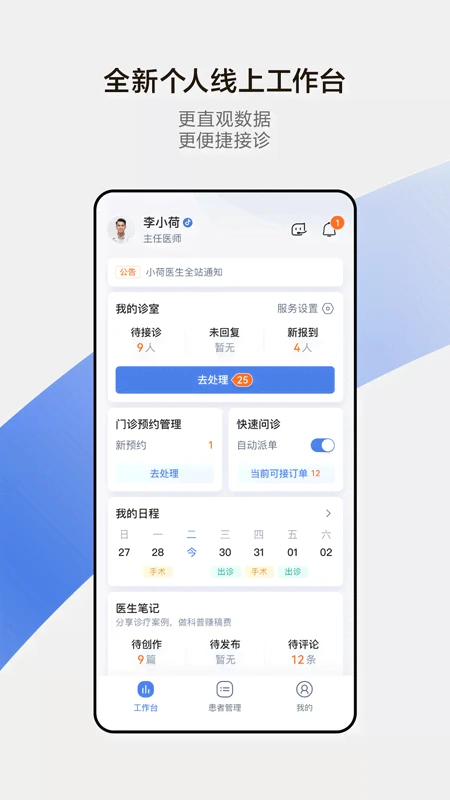 小荷医生是专门为全国医生提供互联网执业的工作平台,提供在线问诊、患者管理等各项服务。