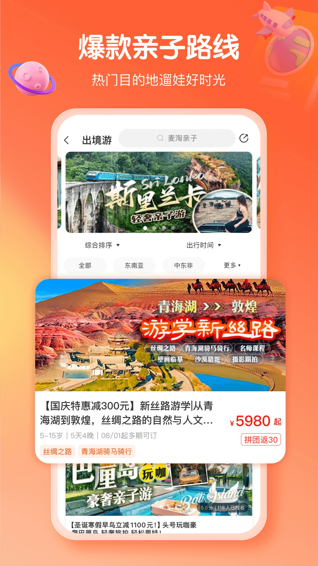 迪士尼、海昌等亲子乐园特价,亲子餐厅、展览、儿童剧门票;亲子酒店、自助餐特价;户外运动、科普活动、教育培训;冬夏令营、国内外亲子旅游游学,应有尽有!